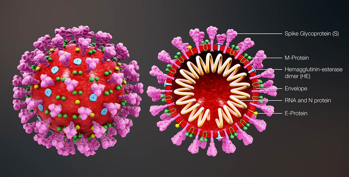 分析其结构,我们发现,2019-nCoV膜表面有三种糖蛋白:刺突糖蛋白(S,Spike Protein,是受体结合位点、溶细胞作用和主要抗原位点);小包膜糖蛋白(E,Envelope Protein,较小,与包膜结合的蛋白);膜糖蛋白(M,Membrane Protein,负责营养物质的跨膜运输、新生病毒出芽释放与病毒外包膜的形成)。少数种类还具有血凝素糖蛋白(HE蛋白,Haemaglutinin-esterase)。