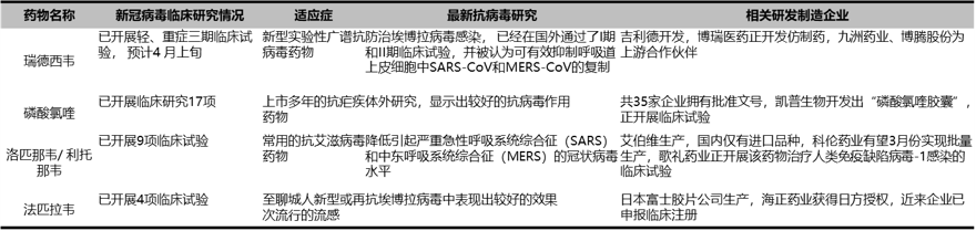 面对来势汹汹的新冠疫情和新药研发上市周期的强烈冲突,短期内开发出全新的化合物以应对新冠疫情是不现实的。SARS与2019-nCoV同源性达80%,且具有共同的药物靶点:包膜S蛋白及RBD/RBM区域,因此,探索老药新用的策略是相对快速且有效的解决办法之一。目前,临床治疗中,瑞德西韦、磷酸氯喹、洛匹那韦、利托那韦、法匹那韦等对抗病毒的治疗已表现出不错的疗效,目前也在积极推进2019-nCoV的有效性研究。