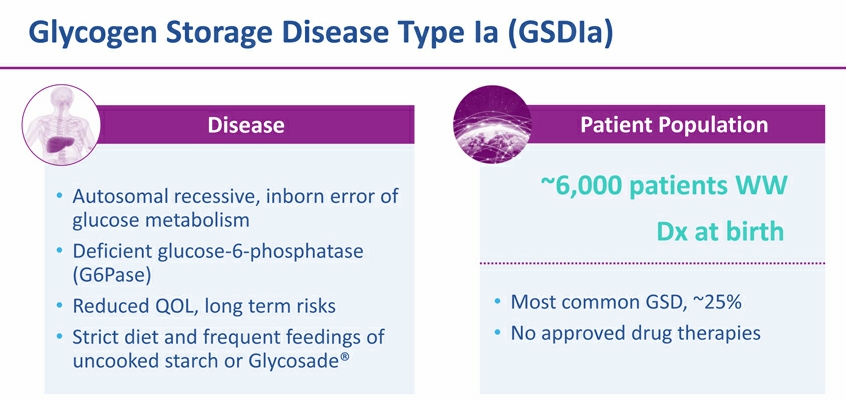 5月15日,Ultragenyx公布了其正在接受评审的基因疗法DTX401对Ia型糖原贮存病(GSDIa)患者影响的早期数据。GSDIa是最严重的遗传性糖原贮存疾病,它是由G6Pase-α酶的基因缺陷导致该酶表达的异常,从而导致患者无法调节血糖(葡萄糖)。GSDIa患者的低血糖可危及生命,而某些器官和组织中复杂糖原的积累可损害这些组织的正常功能,如果长期不治疗,患者可能会发展为严重的乳酸酸中毒,进展为肾功能衰竭,并有可能在婴儿期或儿童期死亡。全球估计有6000名患者受到GSDIa的影响,但遗憾的是目前还没有经过批准的药物可以用于其治疗。