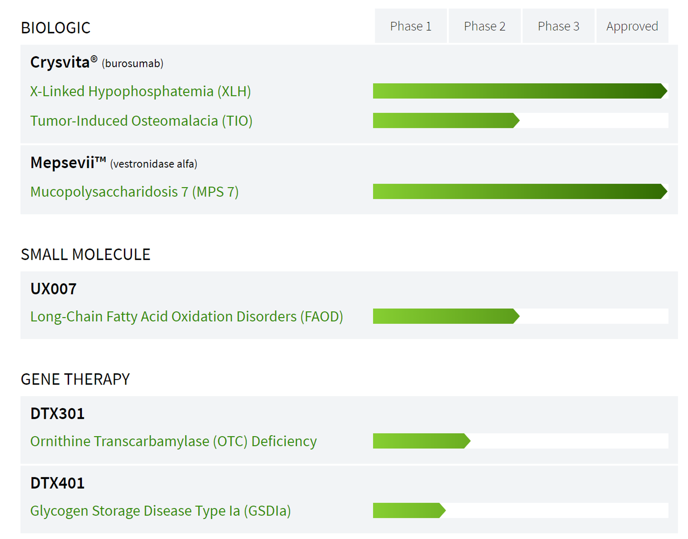 Ultragenyx是一家生物制药公司,致力于为患者带来治疗严重罕见和超罕见遗传疾病的生物药物、小分子药物或基因治疗新产品。该公司已建立了一个多元化的批准疗法和候选疗法管线,由一支在罕见病治疗的开发和商业化方面经验丰富的管理团队领导。