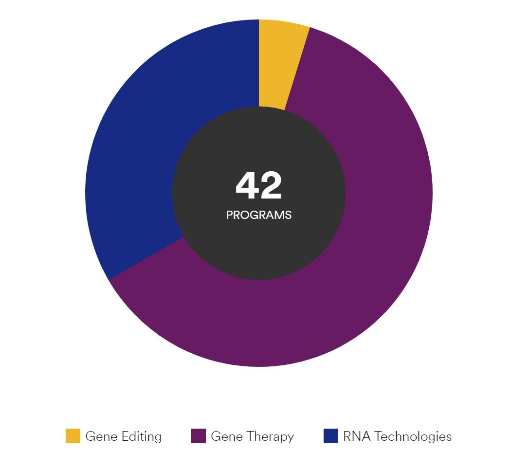 高能预警,下列4个疗法均由Sarepta Therapeutics开发,其针对各种基因遗传疾病的基因疗法管线多达42条。