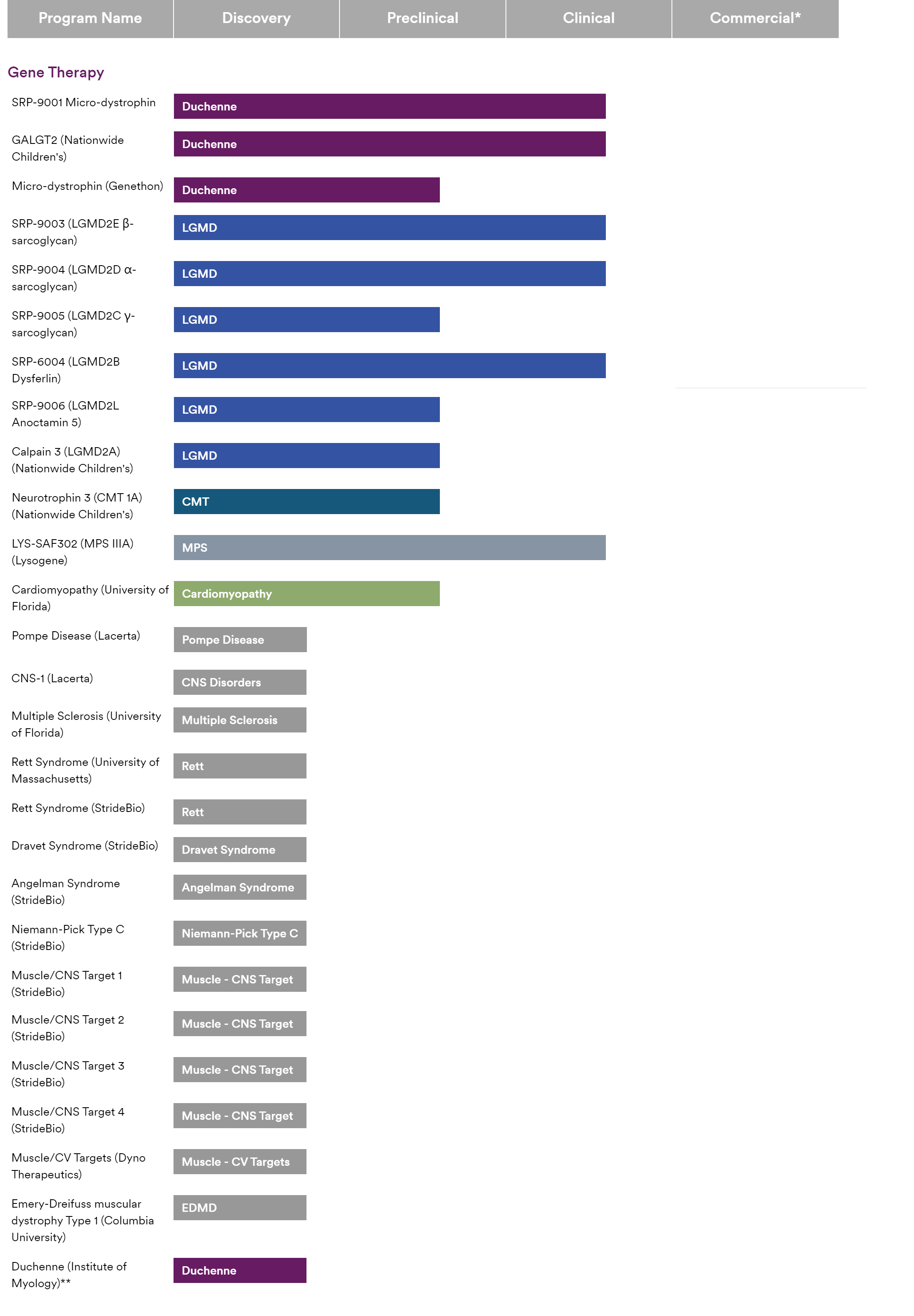 除了上述4款针对MD的药物,Sarepta Therapeutics更多的基因治疗研发管线还包括: