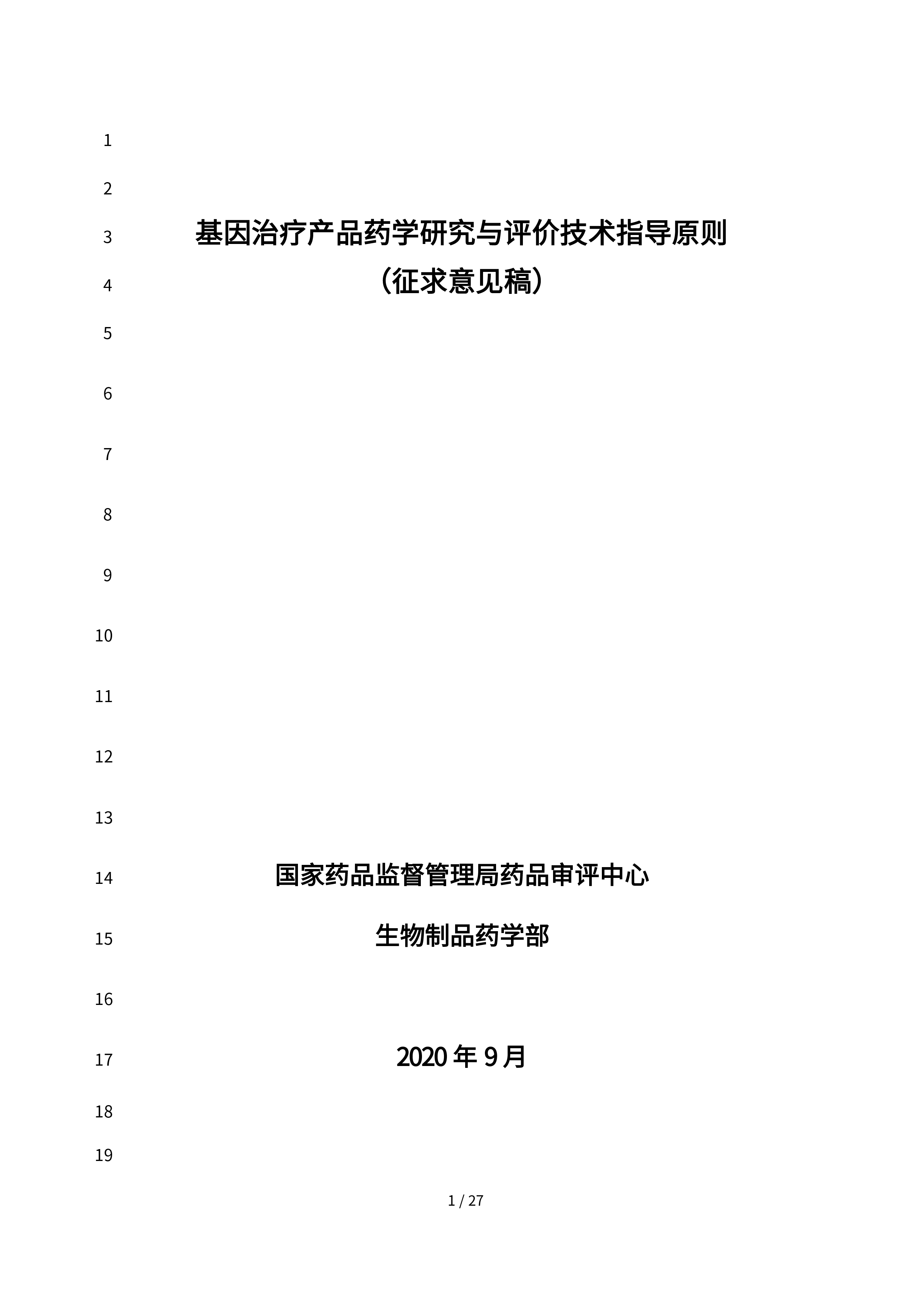 CDE重磅发布《基因治疗产品药学研究与评价技术指导 原则(征求意见稿)》