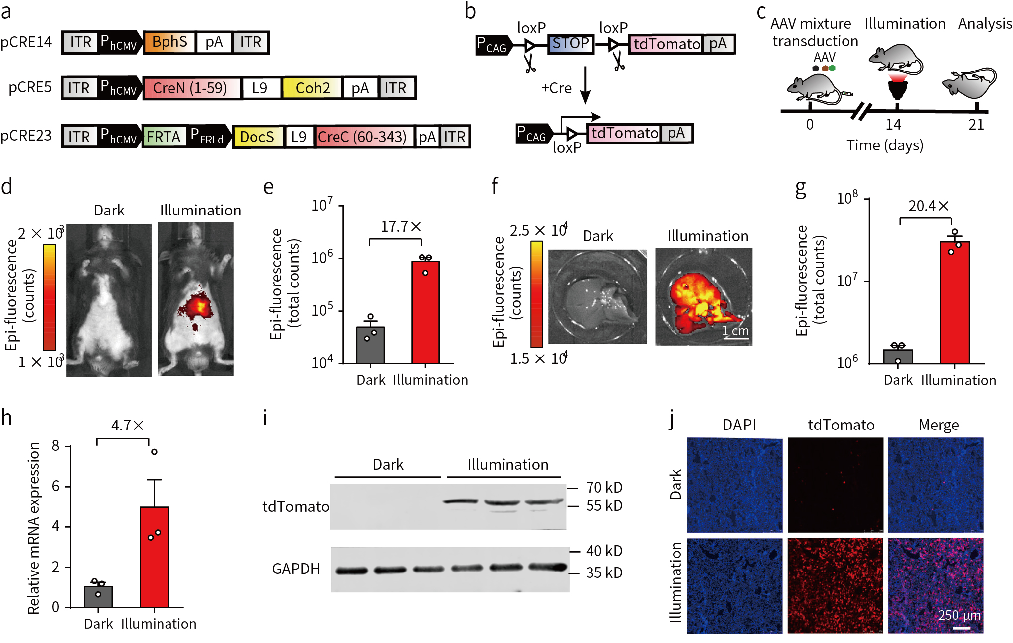 2020年7月,华东师范大学生命学院叶海峰研究员团队在杂志《Nature Communications》上发表了题为“A non-invasive far-red light-induced split-Cre recombinase system for controllable genome engineering in mice”(原文链接://pubmed.ncbi.nlm.nih.gov/32709899/)研究成果。该研究构建了一种基于远红外光诱导的裂解Cre-loxP体系,实现了利用远红外光对体内基因进行调控的目的。
