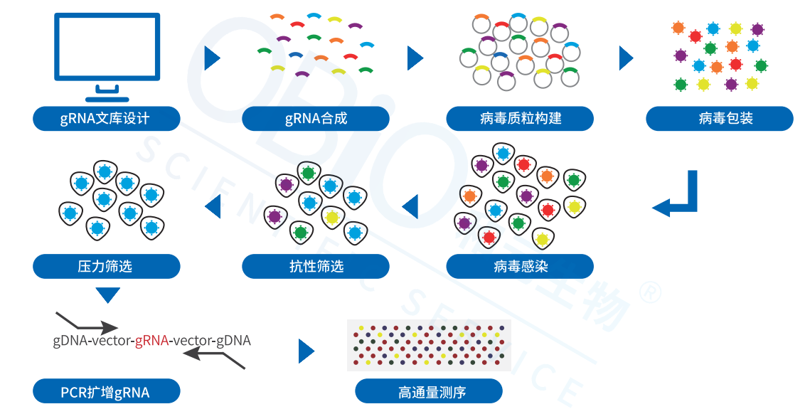 首先选择所需gRNA文库。包括全基因组库和定制文库,采用单/双慢病毒载体,这两种模式载体均携带有额外的抗性筛选标记。