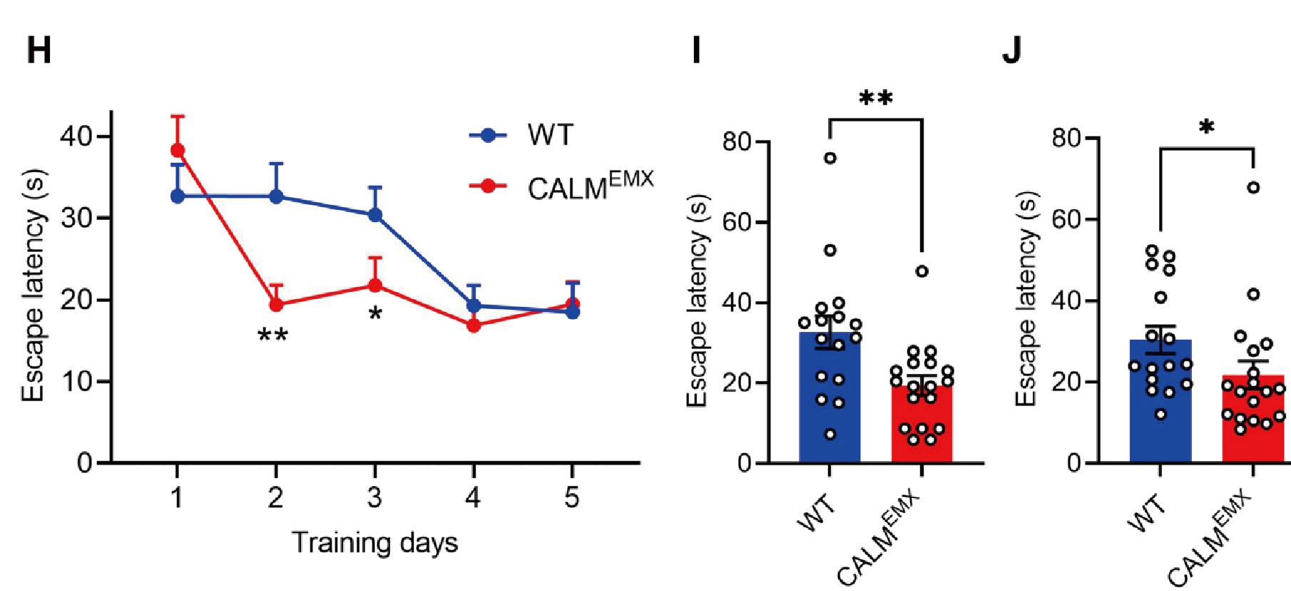 借助Morris水迷宫发现,CALM KOEMX小鼠表现出更强的空间学习能力。这些提示了突触后富集的内吞蛋白CALM在LTD和LTP阶段发挥不同作用,并调节空间学习能力。
