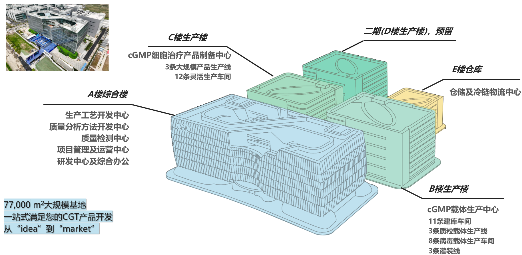 GMP 细胞治疗产品制备中心 :严格按照《细胞治疗产品生产质量管理指南》(2022 年 第 4 号)设计和建设,拥有 15 条密闭工艺和非密闭工艺细胞治疗产品生产线。生产区域涵盖了 C+A 和 B+A 级车间,并配备了细胞制备全站隔离器、蜂巢隔离器等先进设备,其中特别设有 3 条大规模悬浮细胞治疗产品生产线,以满足不同阶段的生产需求。