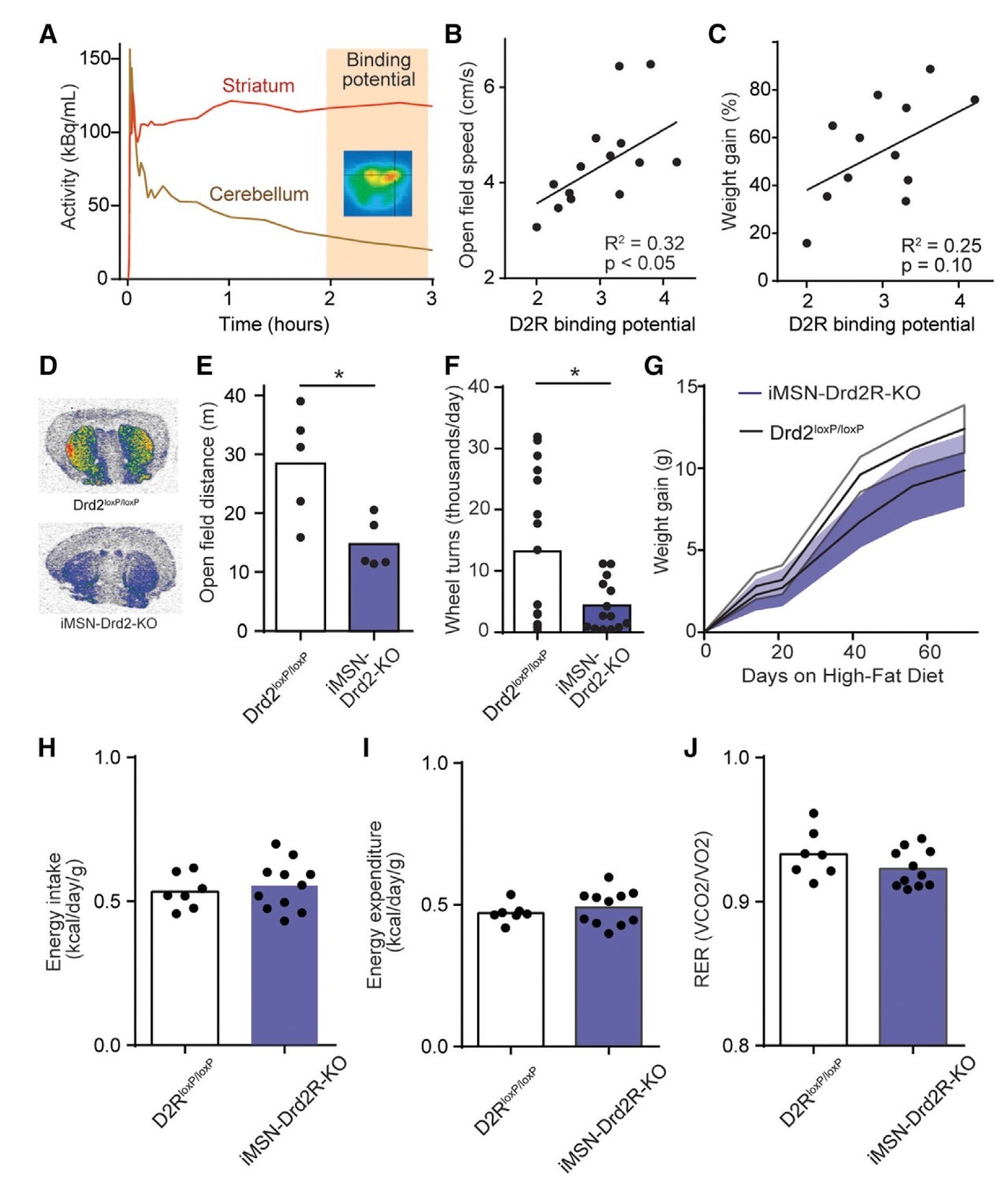 那么,为什么胖子不喜欢运动呢?来自美国国家糖尿病、消化病与肾病研究所的Alexxai V. Kravitz教授,研究发现这是因为我们纹状体中的多巴胺受体D2R表达下调导致的,该研究于2月7日发表在Cell etabolism上[2]。