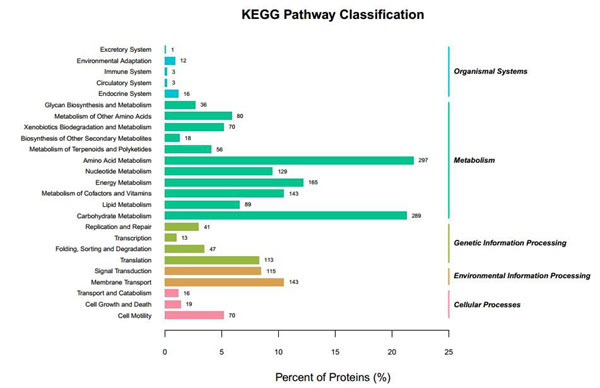 根据KEGG注释总表,可以对注释到KEGG的差异蛋白总体情况进行Unigene数目的统计。