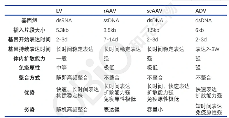 相较于转基因小鼠,借助病毒载体介导的Cre系统实现特异性操作神经元或基因的目的,同时可以大大缩短实验的周期,另外,多种多样的病毒载体,可以最大限度的满足各类实验的需求。各类病毒载体的特点如下: