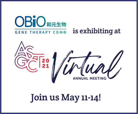 Feel free to join the OBiO virtual booth livestream on May 11 and 13 from 10:30 a.m. to 12:00 p.m. EST, to learn more about gene and cell therapy market access in China and OBiO’s role as a CDMO to help biotech speed up their commercialization worldwide. Dr. Guodong Jia, General Manager of OBiO, will exchange and share insights on gene therapy product research and manufacturing with other global industry professionals around the world.