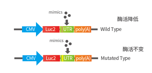 miRNA主要通过作用于靶基因的3’UTR起作用(降解或抑制翻译),将目的基因3’UTR(野生型和结合位点突变型)序列构建至载体中报告基因F-Luc的3’端,通过比较过表达miRNA后,报告基因表达的改变(萤光素酶的活性下降还是不变),来确定miRNA与靶基因3’UTR的作用位点。