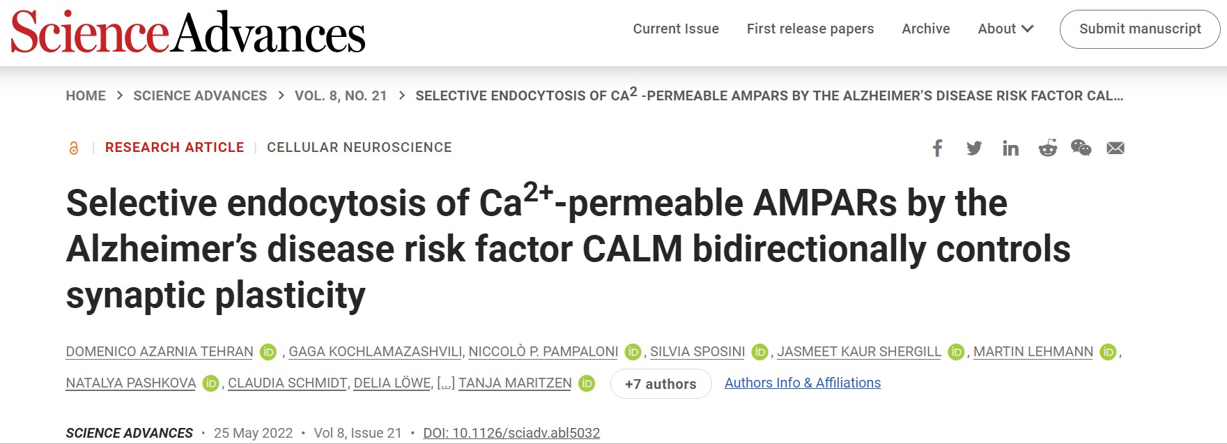 2022年5月25日,德国莱布尼茨研究所Tanja Maritzen和Volker Haucke研究团队借助转基因鼠模型、病毒载体介导的基因表达调控技术、分子生物学技术及成像技术等多种手段发现阿尔兹海默症风险因子CLAM可双向调控突触可塑性及调节学习能力的核心内吞机制。并在Science Advances杂志上发表最新研究论文,标题为:Selective endocytosis of Ca2+-permeable AMPARs by the Alzheimer’s disease risk factor CALM bidirectionally controls synaptic plasticity。