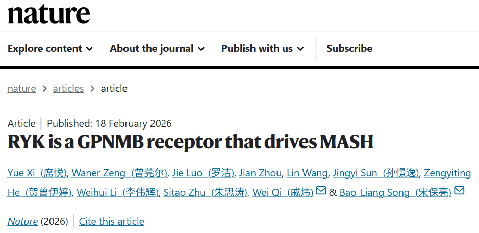 Nature | 武大宋保亮院士团队揭示MASH治疗新靶点GPNMB–RYK轴